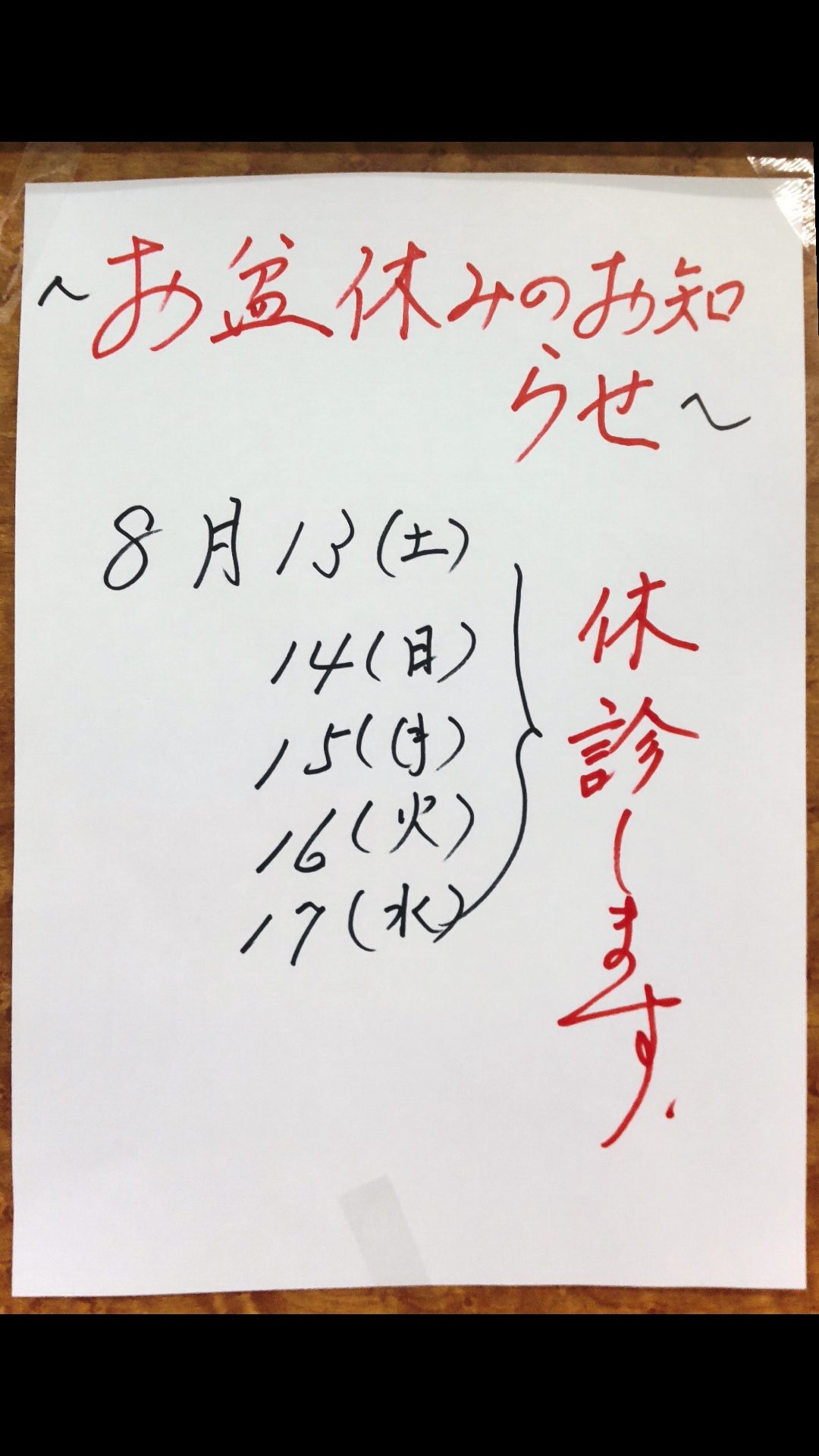 お盆休みのお知らせ