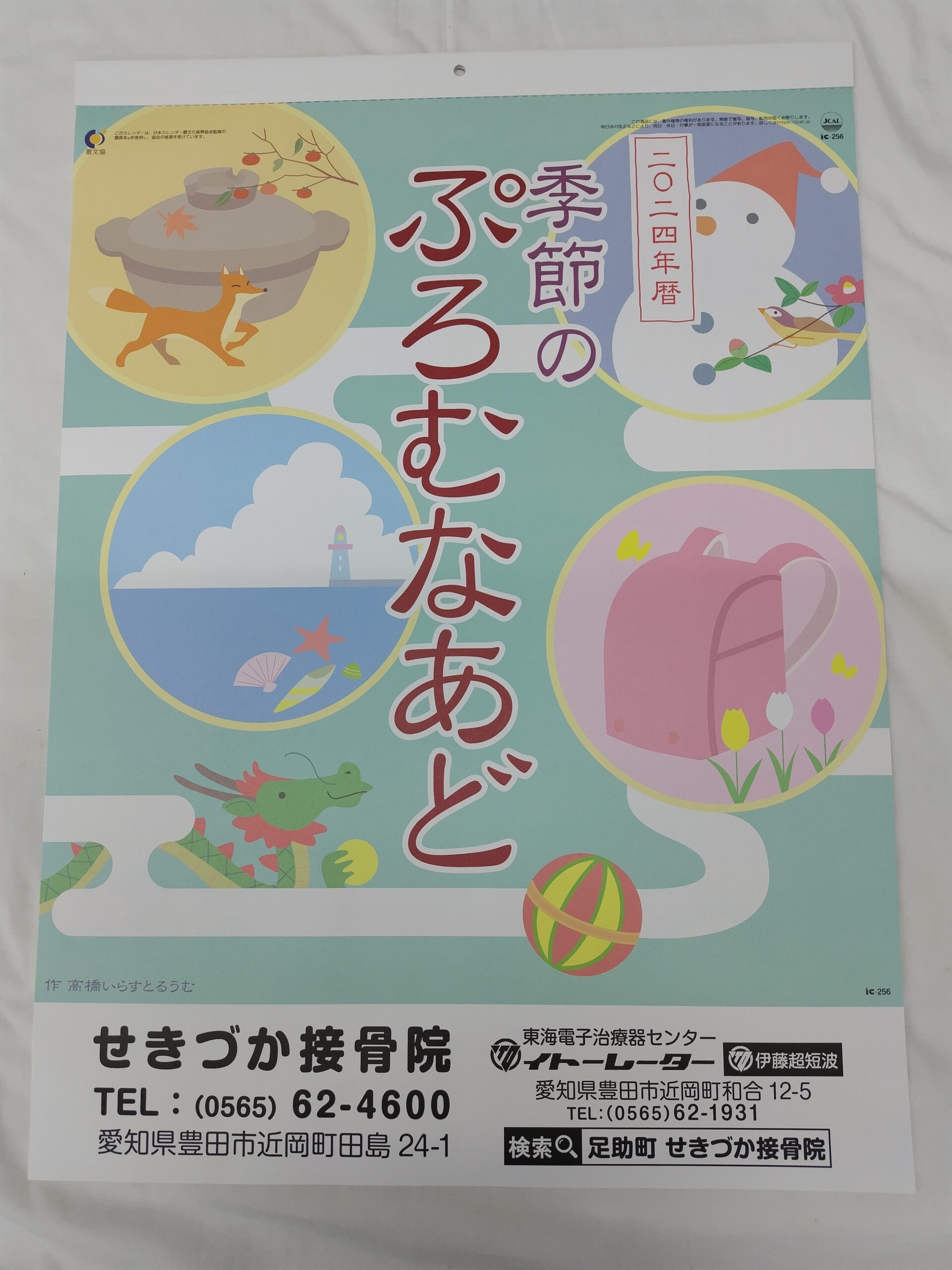 カレンダー 未分類231209211315381 2023.12.09 せきづか接骨院のカレンダーを作りました。 1月 8月 10月 こんな感じです 患者さんからも評判がいいです。 ニチゲンにたのみました。 神奈川県ですが印刷をしてもらいました。 枚数が少ないのでお早めにお越しください。