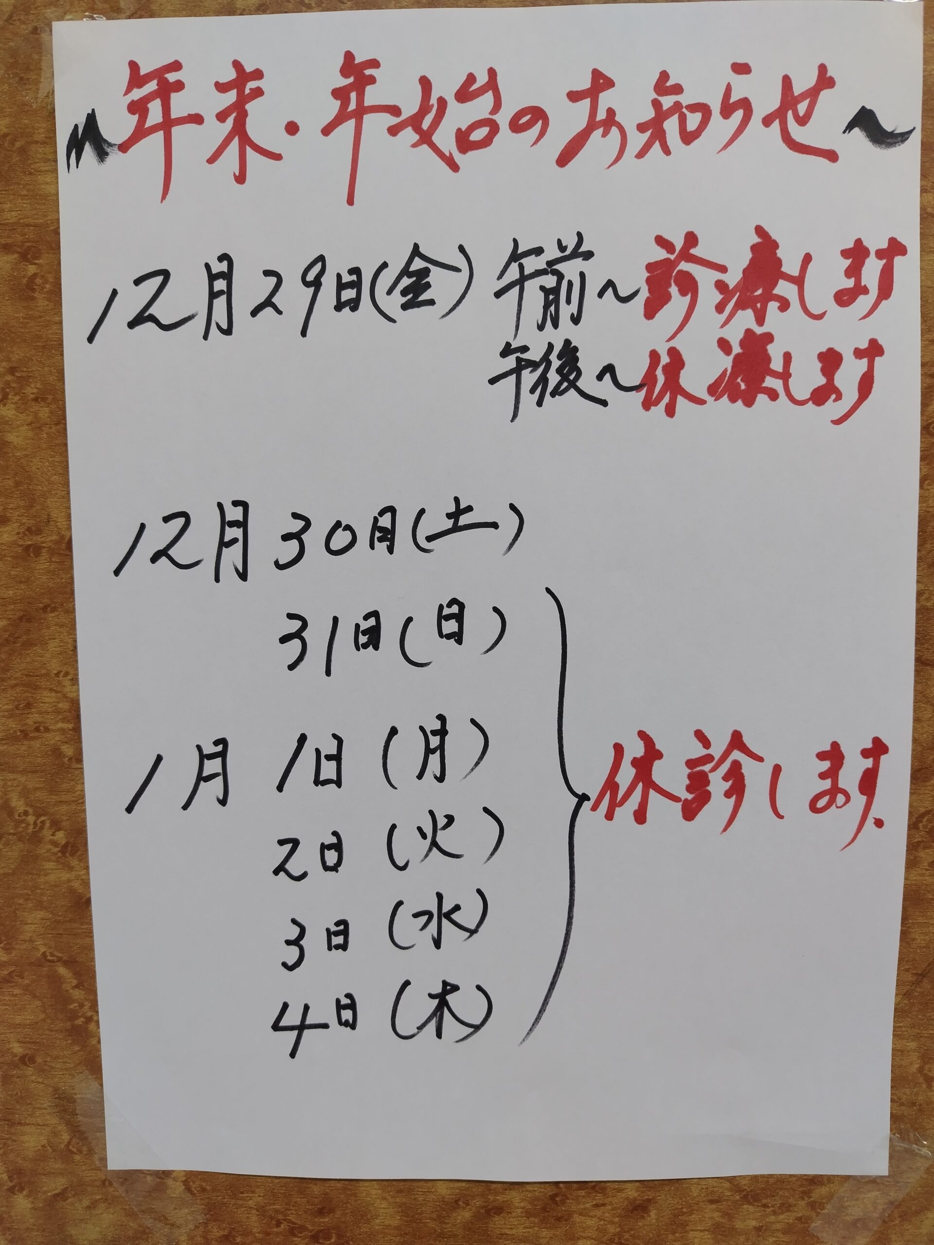 年末年始のお知らせ