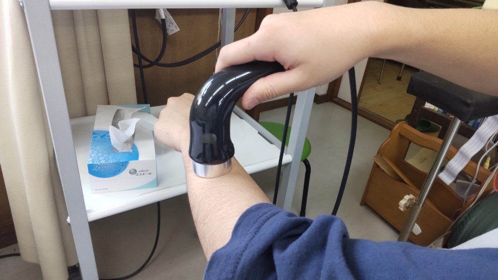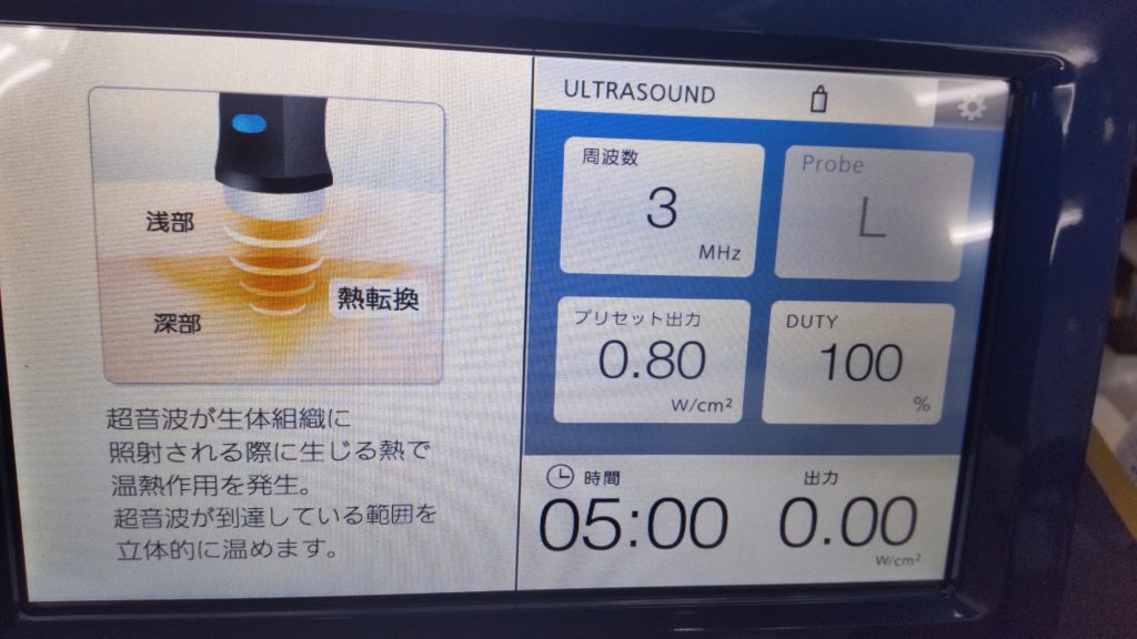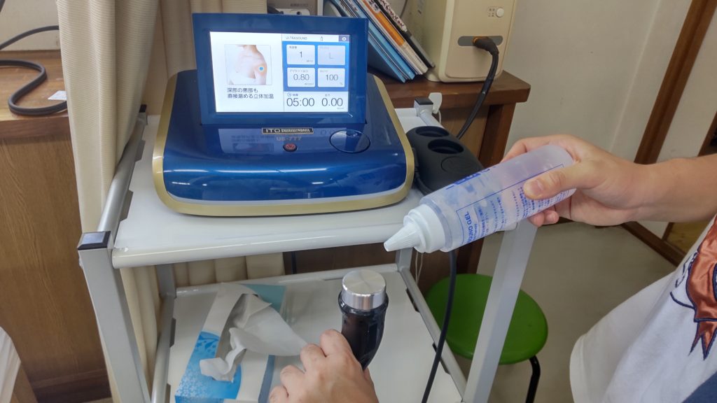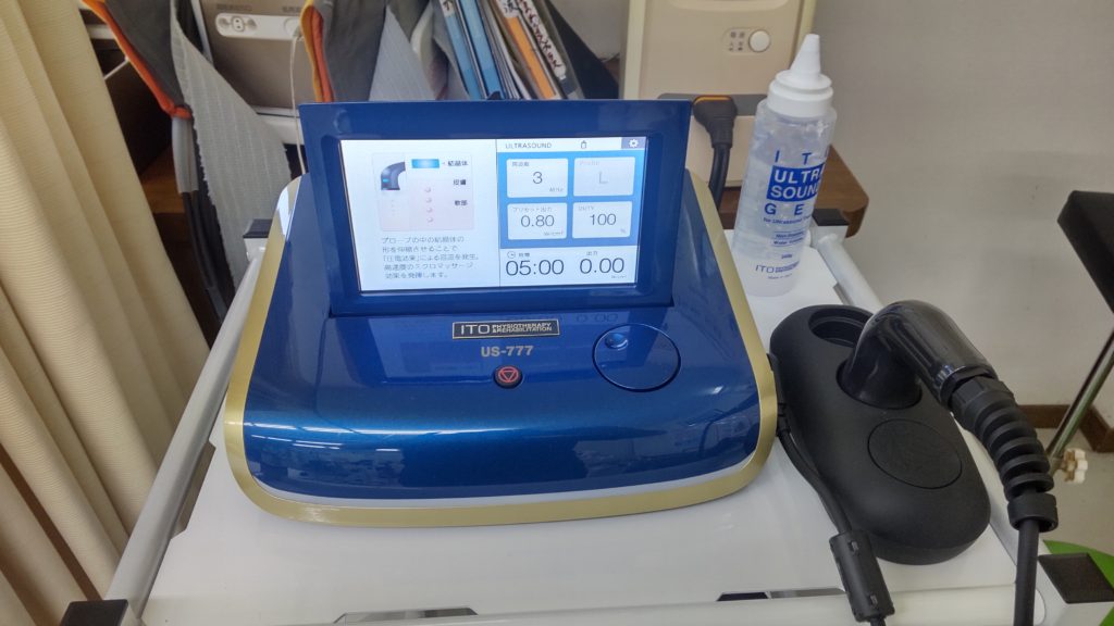 新しい治療器入れました。 未分類DSC_0669 2022.05.29 伊藤超短波の製品です。 超音波治療器です。 導子に専用のジェルをつけます。 患部を治療します。 痛みが軽減されます。 お試しください。